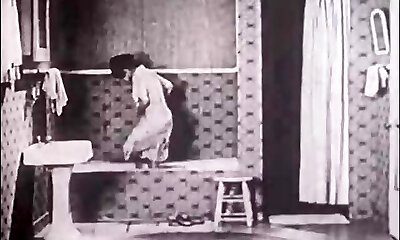 Retro sex flick with a hot busty girl urinating and taking a bath