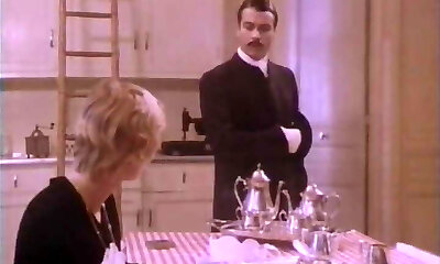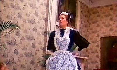 Nasty maid in uber-sexy lingerie set with stockings and garters fucks like nobody