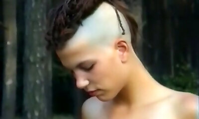 Skinny and tall emo girl with two kinky men in the forest