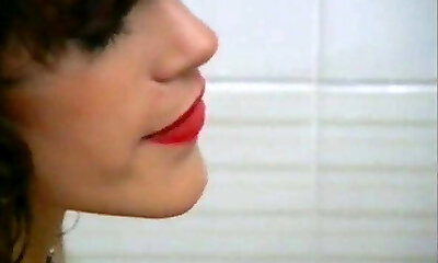Babe strips panties tease big tits retro nylon garters high-heeled slippers