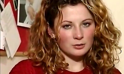 Home alone vintage platinum-blonde plays with her enormous dildo