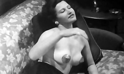 Vintage striptease ended with a doggy style and cum shot in mouth for an elegant brunette