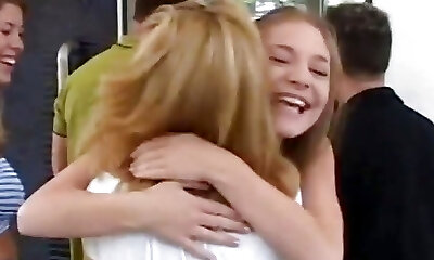 Two German college girls getting penetrated by a student and a teacher