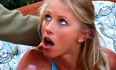 Classic towheaded Amber Ashlee fucks doggy style and rides cock