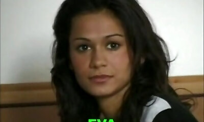 Fresh girlfriend Mini Vanilli gets her tight cunny polished in classical poses