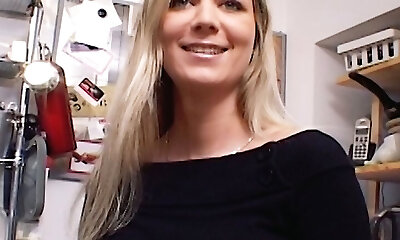 Fabulous blonde honey from Germany shaving her muff to please her man