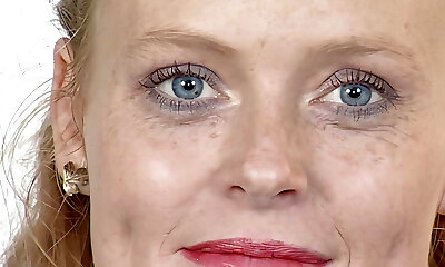 Old but horny German doll dildoing her shaved twat