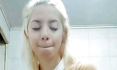 French chick with towheaded hair having fun with a loaded BBC
